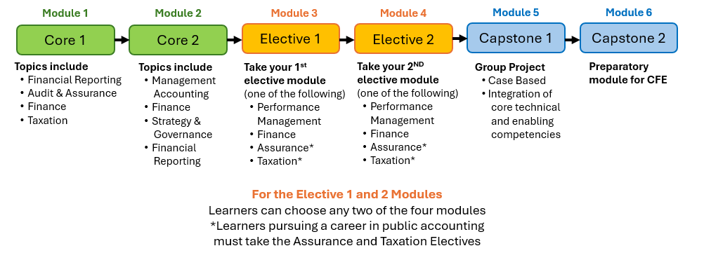 CPA PEP capstone modules are culminating courses; candidates demonstrate what they have learned through the core and elective modules. All CPA candidates must complete both capstone modules.